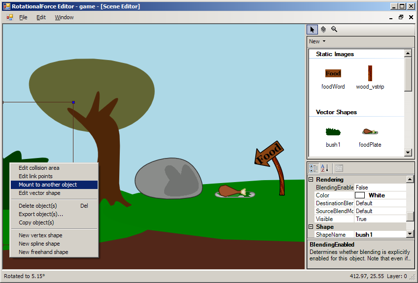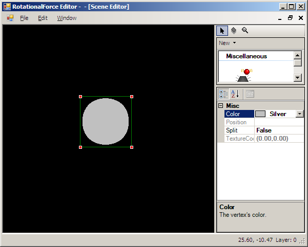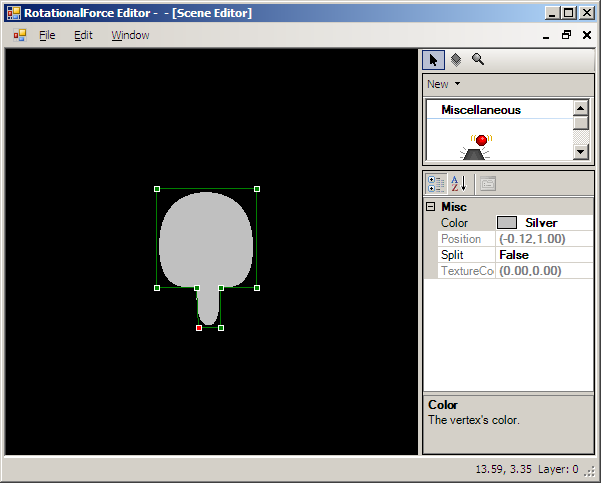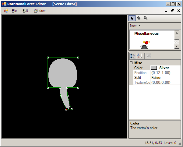 I started writing a vector-based 2d game engine, but as usual, I didn't finish it. It was pretty cool, though. The design was powerful, and the editor I made for it was one of my better programs. I don't feel like writing a lot about it, though, so I'll just dump the text from the editor's original web page here.