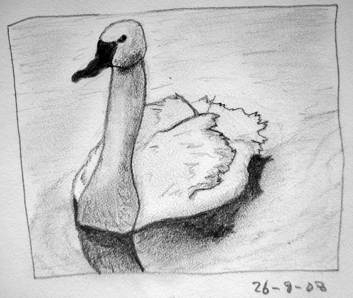 I started drawing again (8-24-08), and made this swan. It seems to be angry. It's just 2B pencil