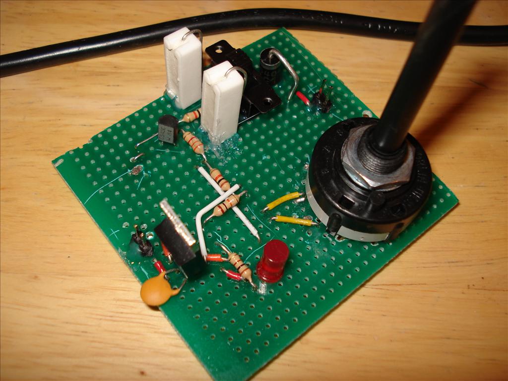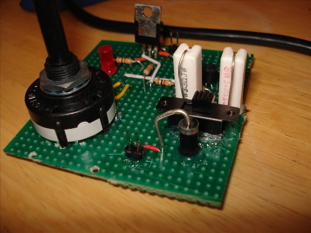 Here it is with a few more components soldered on. The switch was only rated for 0.6 amps, despite me needing to put 1 amp through it. I assumed it was 0.6 amps per pole, and since it was a double-pole switch, I just connected both poles together to double the rating. Might work!