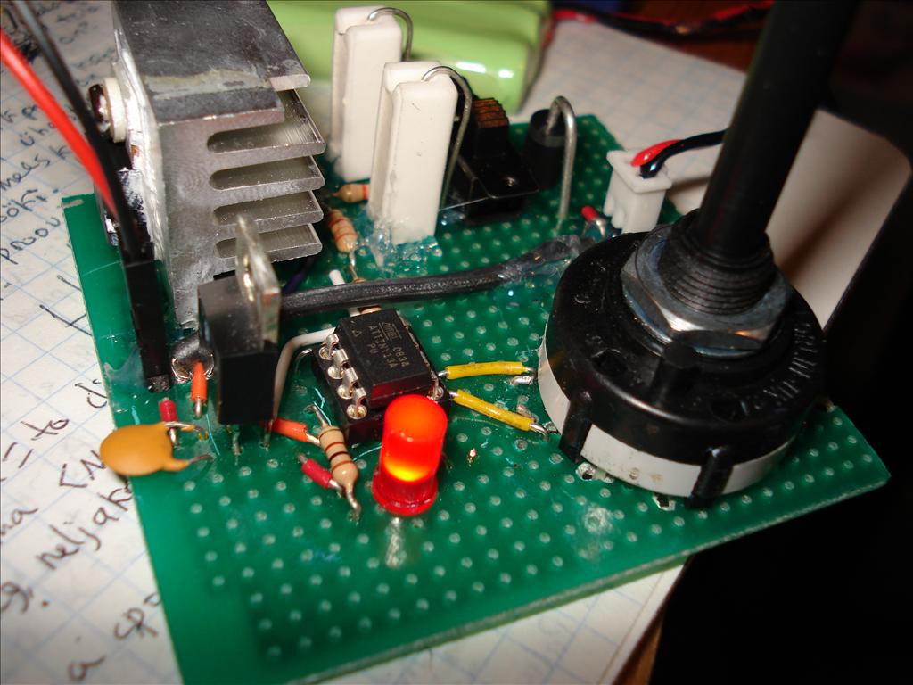 As a finishing touch, I'll cut the long stem of the rotary switch and attach a proper knob to it, once I receive the necessary hex key. And that'll be that. I was impressed with the ATtiny's ability to withstand abuse. Several times I accidentally connected it to high voltage, bent its pins, interrupted its programming, and wired things up wrongly, but it kept on ticking. The source code, compiled binary, schematic, and layout are all here, if you're curious or would like to try building your own charger.